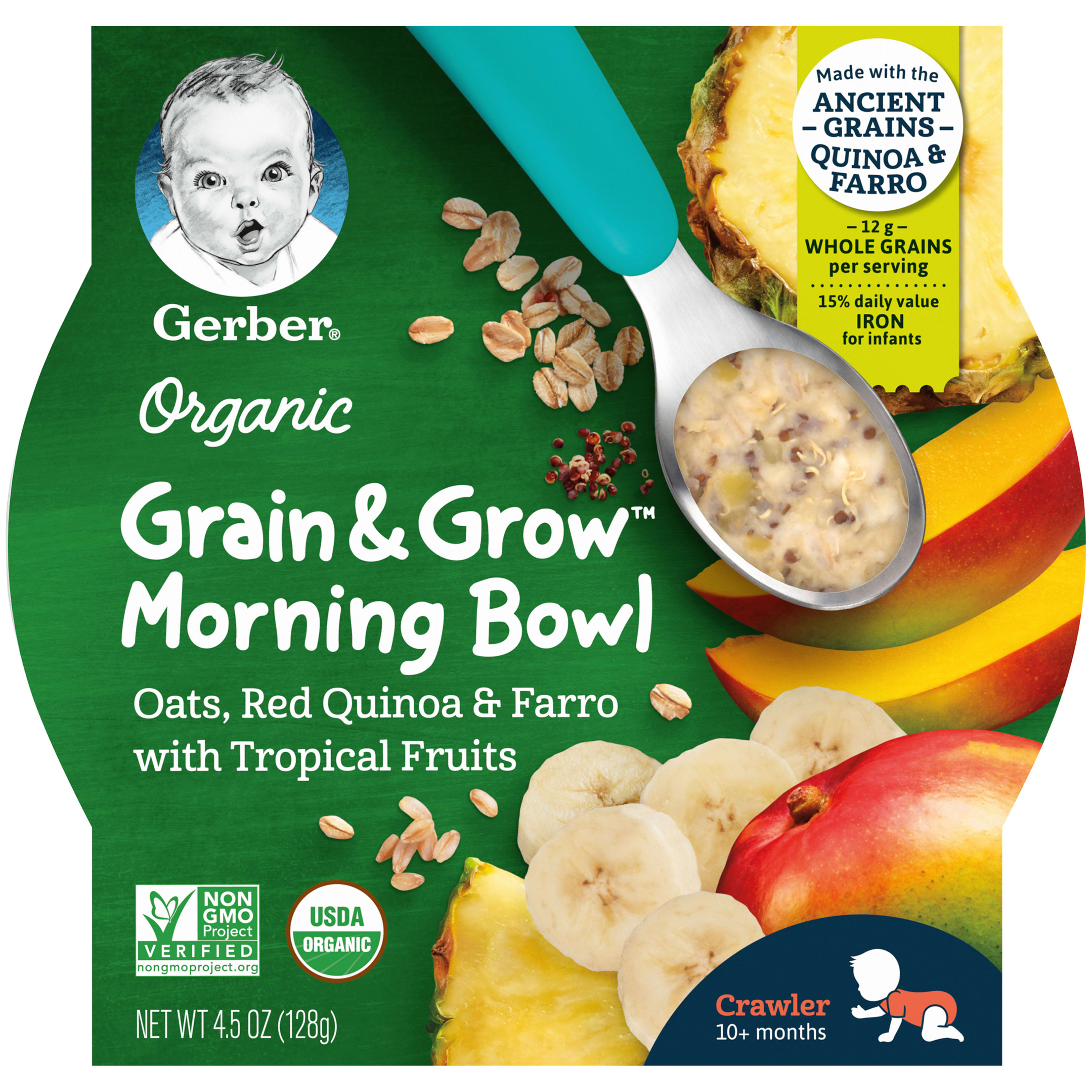 Gerber Organic Grain Grow Morning Bowl Oats Red Quinoa Farro With Tropical Fruits 4 5 Oz Tray 8 Pack Walmart Com